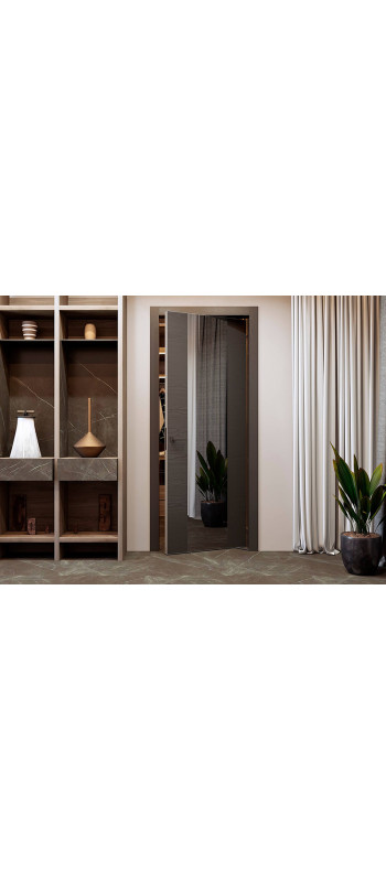 Ротационный механизм универсален и может использоваться для дверных полотен из многих материалов, не отличающихся большим весом. Наиболее популярные конструкции с полотном в покрытии шпона, стекла, зеркала, эмали.